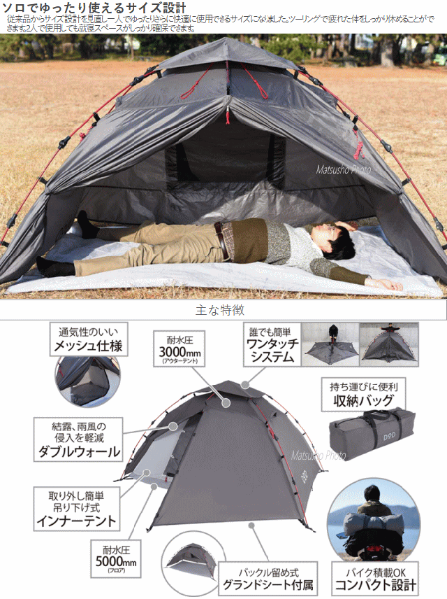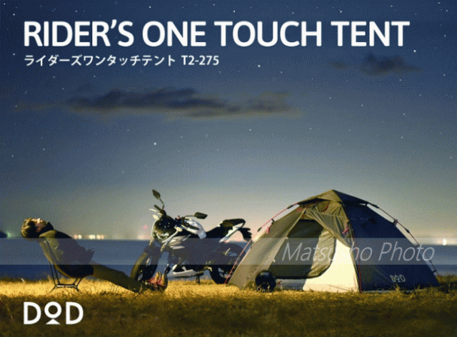 DOD テント ワンタッチテント ツーリングテント バイクツーリングキャンプ ソロキャンプ ワンタッチ設営 ポリエステル 2人 ライダーズ バイク ライダーズワンタッチテント T2-275 グレー