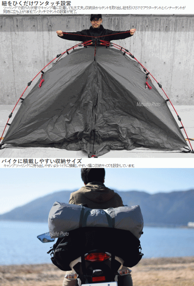 送料無料 ワンタッチテント バイクツーリングキャンプ バイク