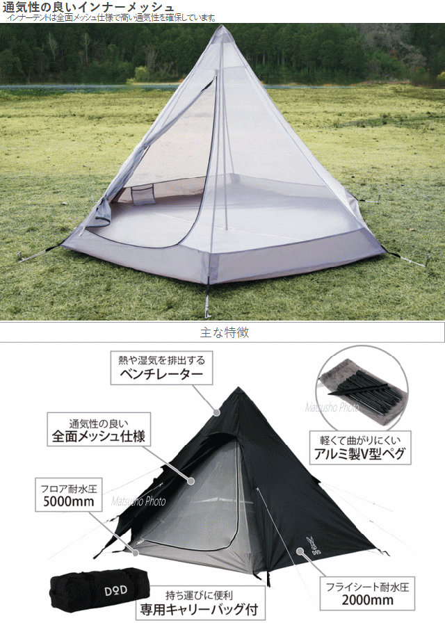 DOD テント 3人用 ワンポールテント ティピー型テント 6角形 ポリエステル コンパクト アウトドア キャンプ ワンポールテントS T3-44-BK ブラック