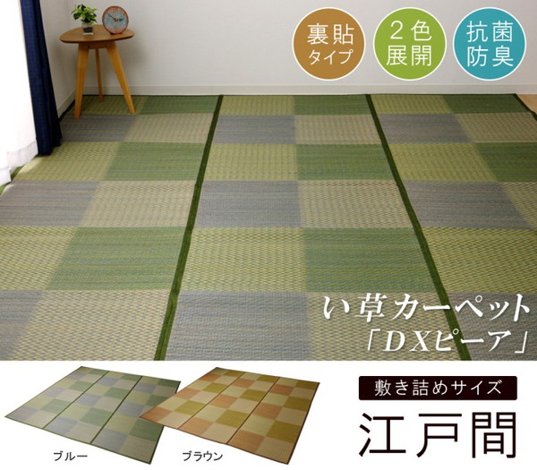 い草ラグ 花ござ カーペット ラグ 8畳 格子柄 市松柄 DXピーア ブルー 江戸間8畳 約348×352cm 裏:不織布(代引不可)【送料無料】