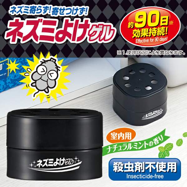 ネズミよけゲル室内用 ナチュラルミントの香り■商品詳細ネズミが嫌いな香り!ネズミ寄らず、寄せ付けず!殺虫成分不使用。侵入を防ぎたい場所に置いて簡単!本製品は室内使用で、約90日効果持続します。(※環境による)ナチュラルミントの香り配合。天井裏、床下、倉庫、物置、ゴミ箱周辺、ネズミの通路、侵入口に1〜2個おいてください。内容量:85g サイズ:(約)幅6.9×奥行き6.9×高さ4.5cm 成分:界面活性剤、香料用途:不快害虫用 使用場所:室内用、天井裏、廊下、倉庫、物置、ゴミ箱周辺日本製■備考区分:日用品広告文責:株式会社マツムラカメラ 076-242-1122※使用感には個人差がございます。ネズミよけゲル送料区分:小母の日 ギフト 父の日 ギフト 敬老の日 ギフト クリスマス ギフト お正月 子供の日 ギフト バレンタインデー ギフト ホワイトデー ギフト 可愛い おしゃれ オシャレ パーティー 入学祝い ギフト 卒業祝い ギフト 結婚記念日 ギフト お歳暮 ギフト お中元 旧正月 春節 お誕生日 などのプレゼントに大変申し訳ございませんが のし 包装は対応いたしておりません。