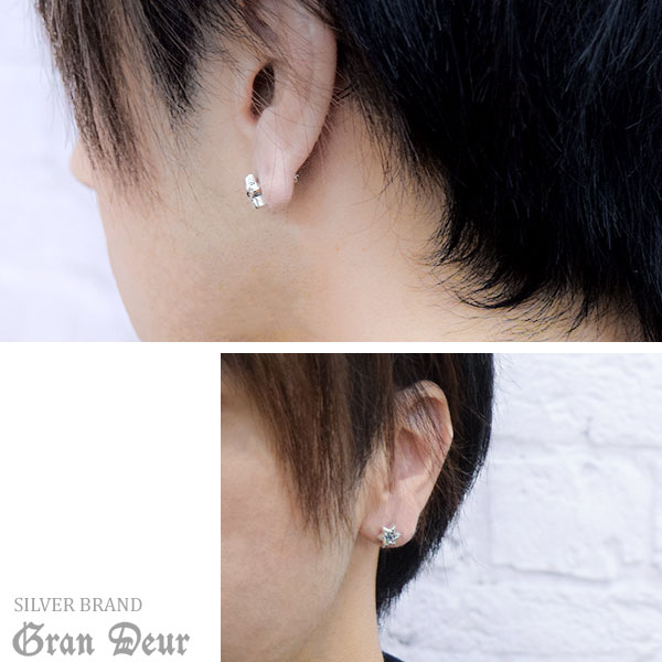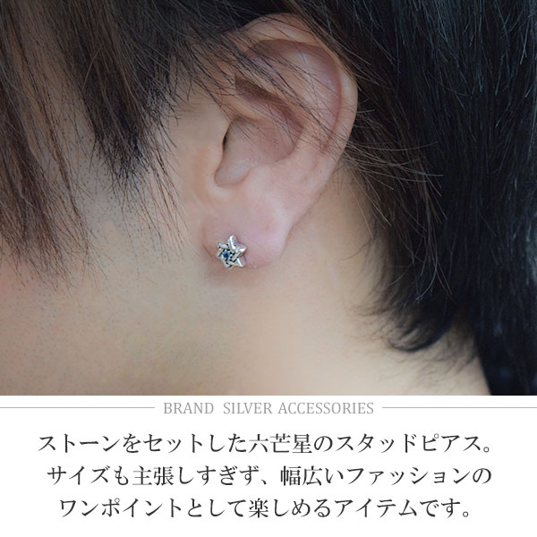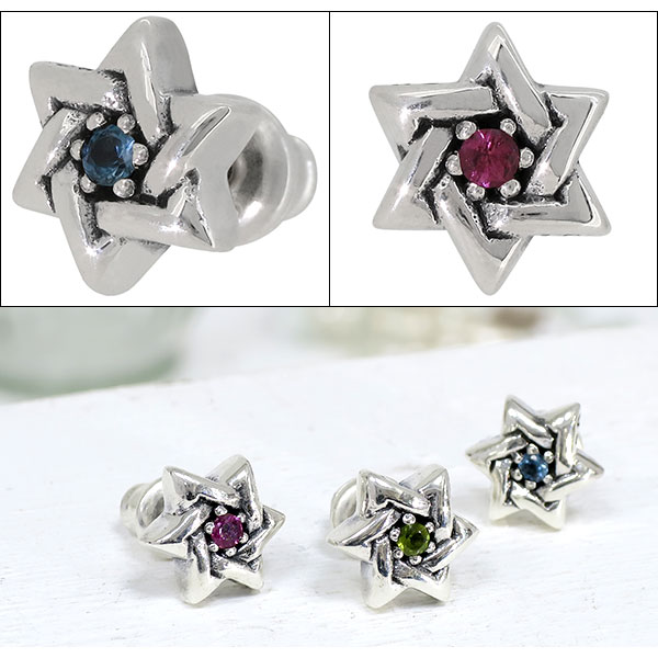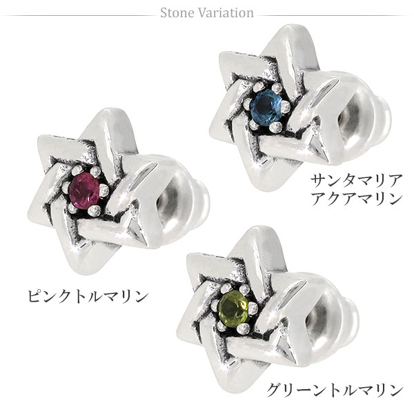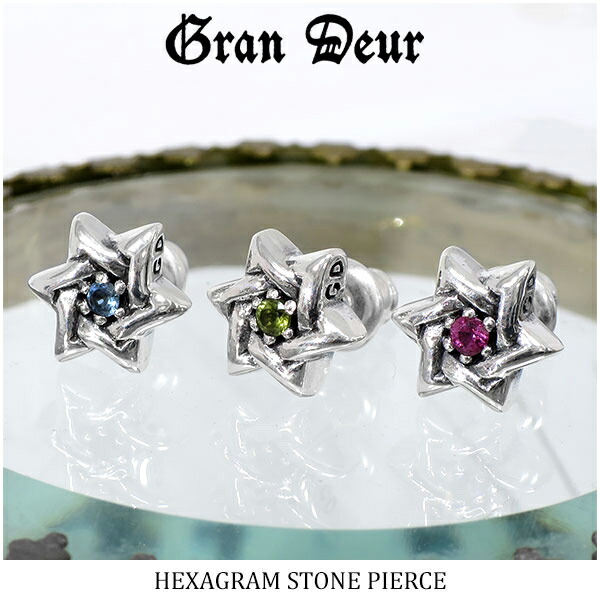 GRANDEUR ダビデの星 ヘキサグラム サンタマリアアクアマリン トルマリン シルバーピアス 1P 片耳用 メンズ ピアス シルバー メンズ