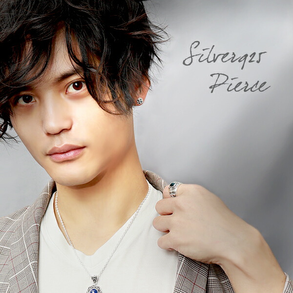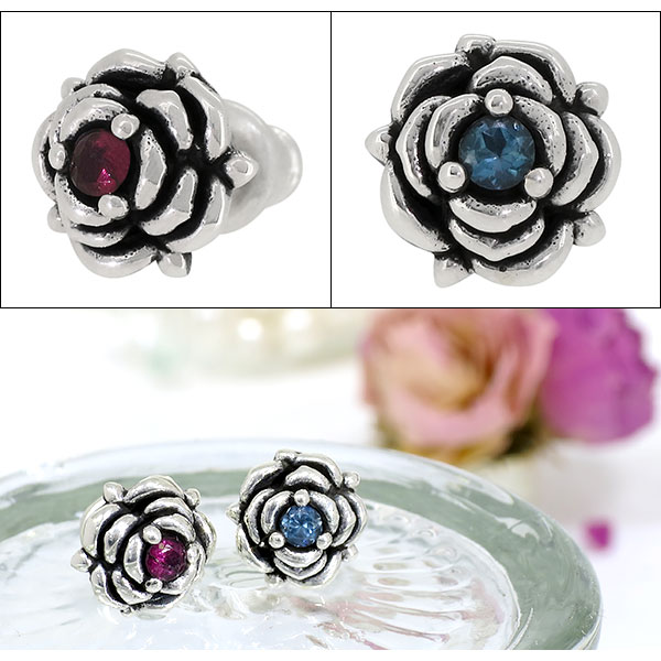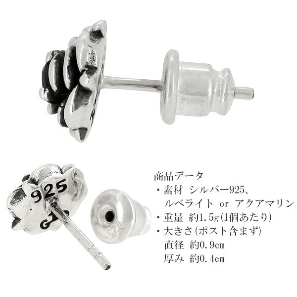 GRANDEUR ローズ サンタマリアアクアマリン ルベライト シルバーピアス 1P 片耳用 スタッドピアス メンズ レディース ピアス シルバー