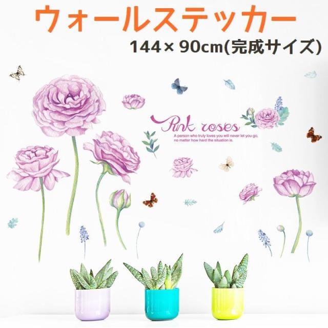 ウォールステッカー 壁紙シール ウォールシール 花 フラワー 蝶 イラスト 可愛い かわいい おしゃれ 壁シール 壁面装