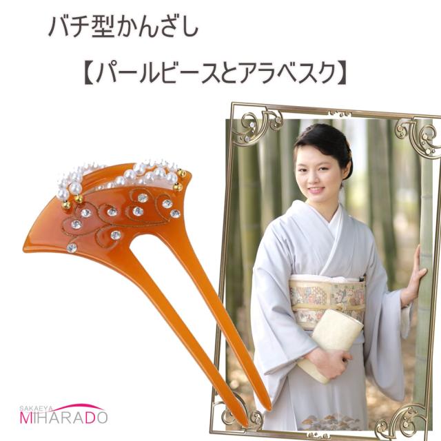 【即納 メール便 送料無料】バチ型 かんざし 簪 パールビーズとアラベスク 付下げ 色留袖 黒留袖 留袖 訪問着 結婚式 入学式