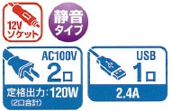 出力電圧:AC100V(ACコンセント×2口)