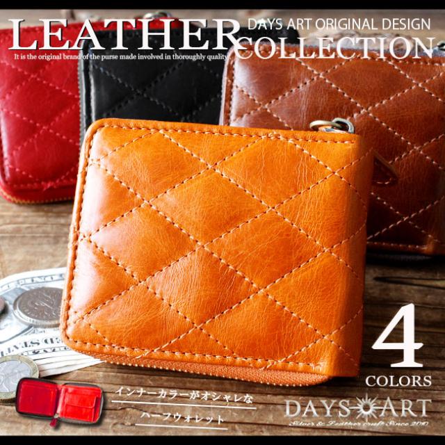 デイズアート DaysArt 財布 ラウンドファスナー メンズ レディース ユニセックス ダイヤキルティング イタリアンレザー 本革 二つ折り財布 ブラック ブラウン ダークブラウン レッド 【ギフト】 lw187