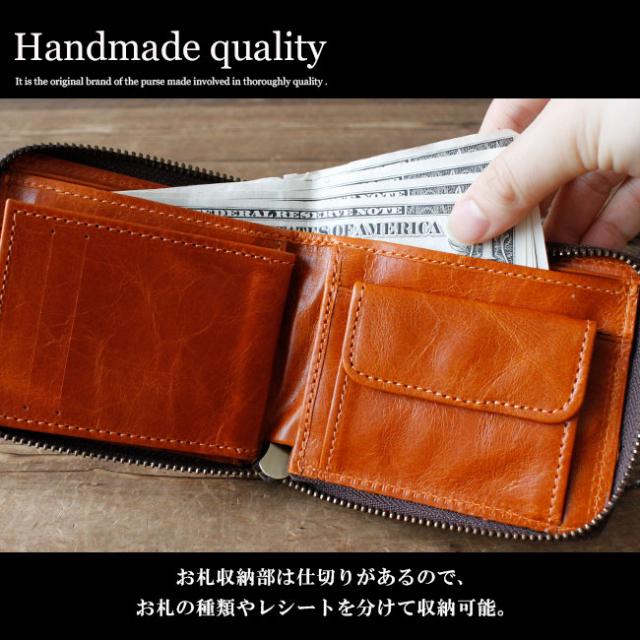 落ち着いた艶のある表面にシボ(牛革のしわ)が浮き上がる独特の風合いが上品さを演出するバロンレザーを使用したラウンドファスナーウォレットです。キルティング加工が上品な雰囲気を演出し、外側と内側のツートンカラーでシンプルになりすぎず、遊び心のあるお洒落なデザインになっています。札入れ、小銭入れ、カード入れと一通りの収納を備えながら軽くコンパクトに設計されており、窓付きのカードホルダーが定期などの収納に便利と携帯性と機能性にも優れます。ユニセックスなデザインで男女問わずお使いいただけます。
