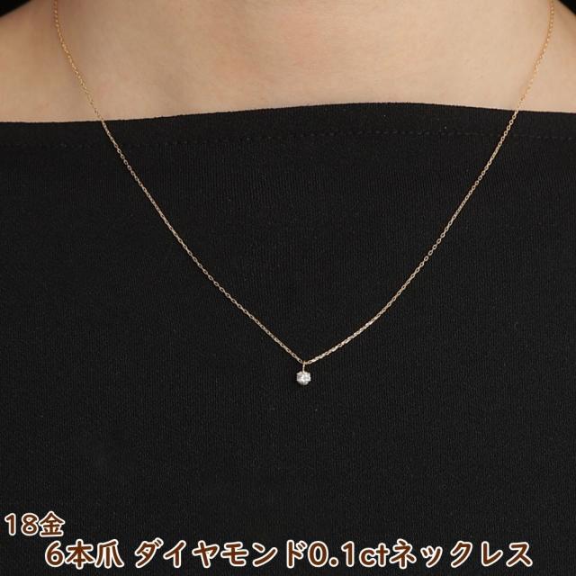 18金 ダイヤモンド ネックレス 一粒 0.1ct シンプル 6本爪 レディース k18 18k ジュエリー アクセサリー プレゼント ギフト