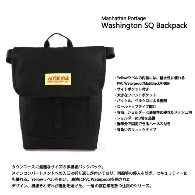 [送料無料]マンハッタンポーテージ バックパック リュック Washington SQ Backpack メンズ レディース Manhattan Portage