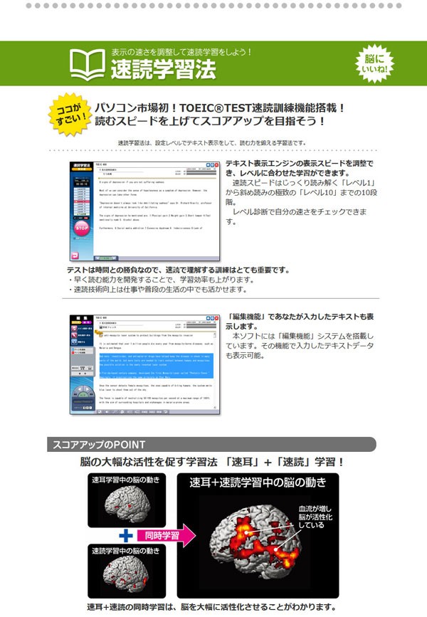 必ず見つかる!あなたに最適な学習法!脳トレ生活では、特別価格でご紹介!初級者向け!7つの学習法を学習段階に応じて変化させることで、効率よく、飽きずにスコアアップを目指せます!【動作環境】■1GHz以上のCPU(2GHz以上推奨)■DVD-ROMドライブ■Windows互換のサウンドカード■Microsoft Windows 10*/ 8.1*/ 7* (日本語版)■True Color表示可能な解像度1366×768以上のディスプレイ■メモリ1GB以上(2GB以上推奨)