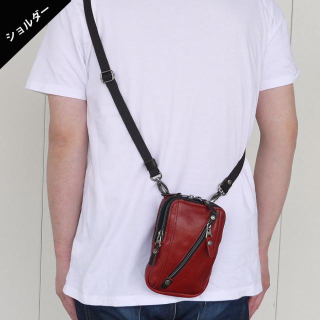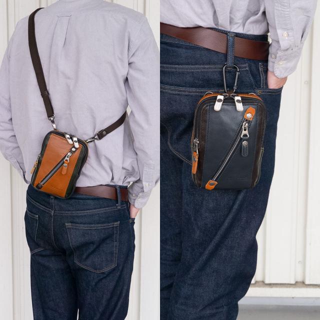 チョークバッグ メンズ 本革 革 レザー 小さめ コンパクト ウエストポーチ ウエストバッグ ベルト カラビナ ショルダーポーチ サコッシュバッグ スマホ 財布 ミニショルダーバッグ かばん 鞄 ポーチバッグ DOUBLES ダブルス VIF-7201