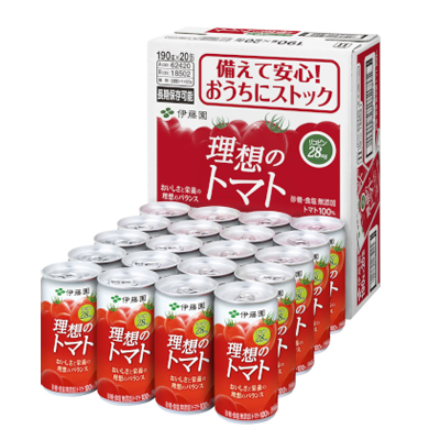 | 商品特徴: | 厳選された完熟トマトを使用し、理想の“おいしさ”と“栄養”を追求したトマト100%飲料です(砂糖・食塩無添加)。 トマト由来の栄養成分であるリコピンを含有していますので、美容と健康を気にされる方におすすめです。 |