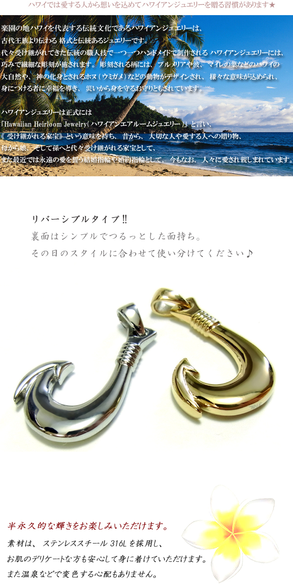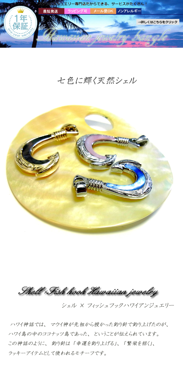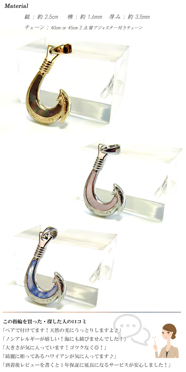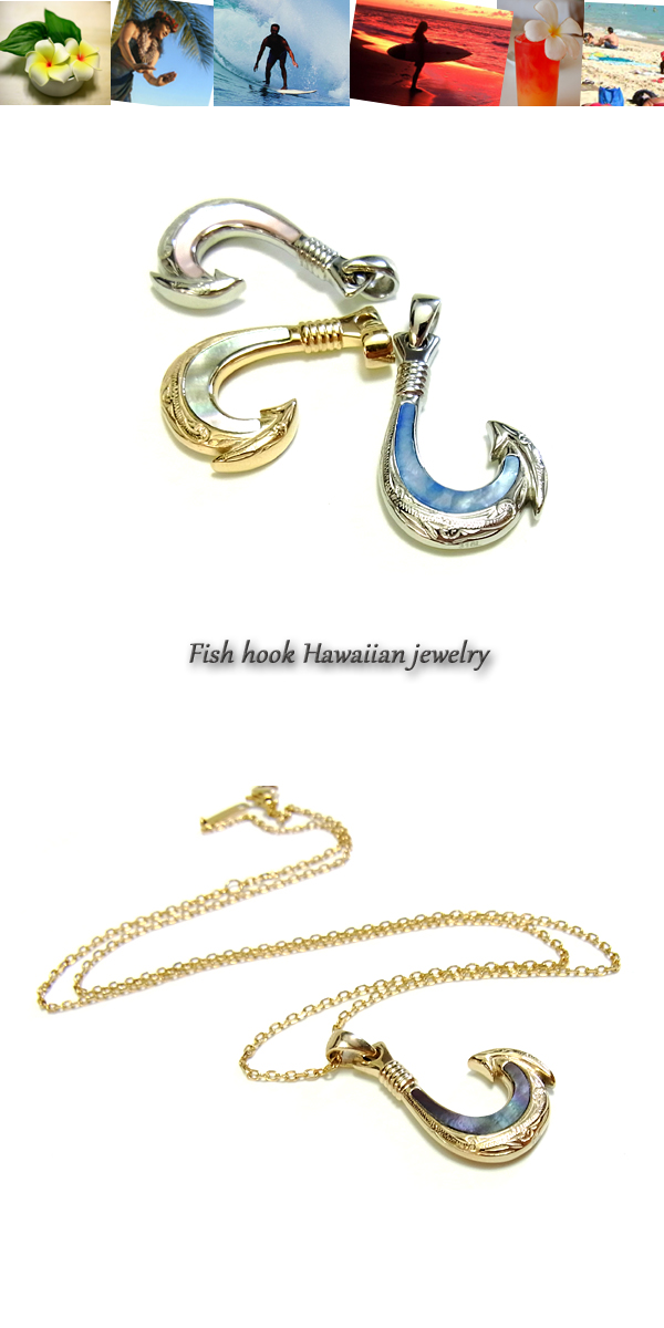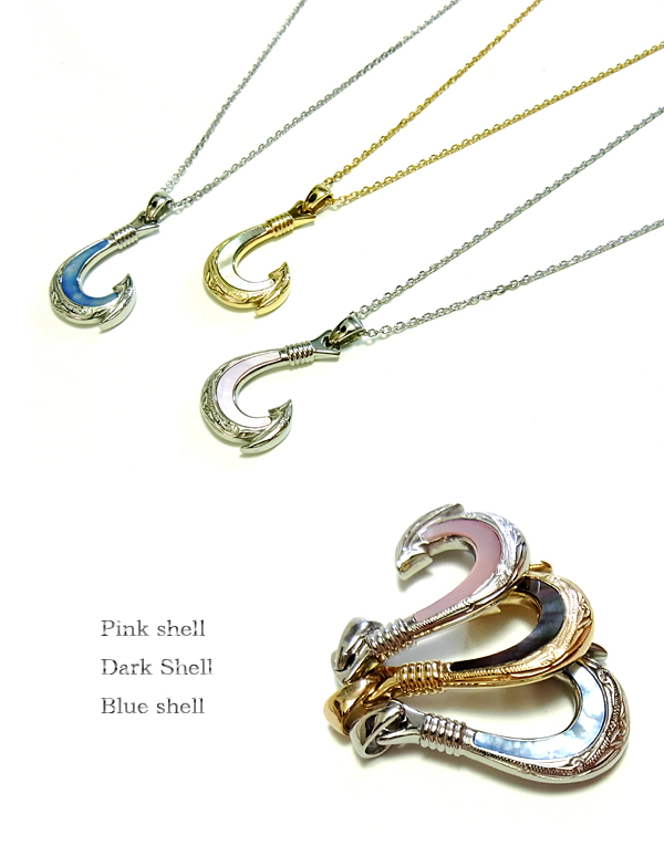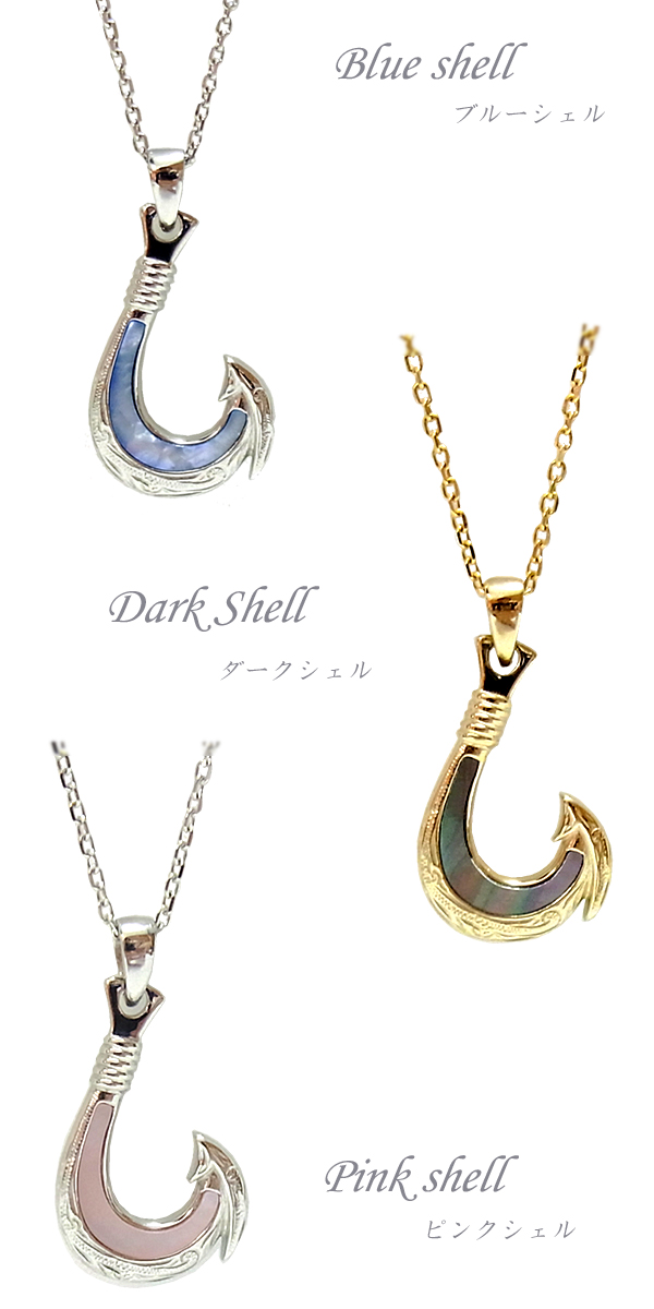 ハワイアンジュエリー フィッシュフック ネックレス シェル レディース メンズ イエローゴールド シルバー 誕生日 記念 ラッピング対応 アレルギー対応