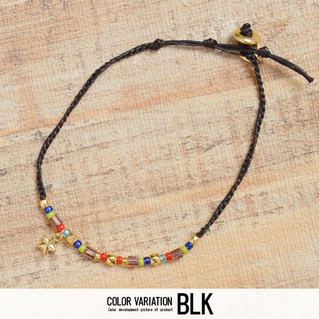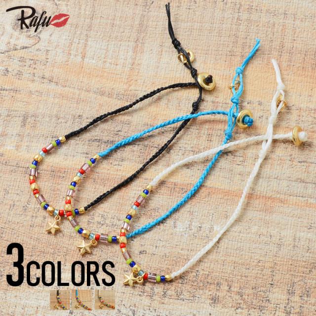 セール価格 SALE 50%OFF アンクレット メンズ Rafu ラフ スターチャームカラフルビーズ&コードアンクレット 即日発送 小物 アクセサリー ビーズ コード 星 革 レザー チャーム スター ブラック ホワイト ブルー サーフ ハワイ リゾート 海 [H-86]