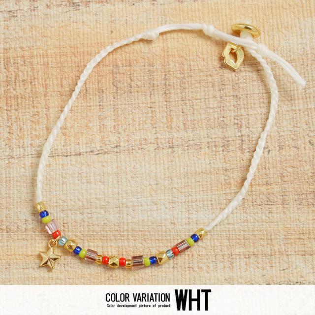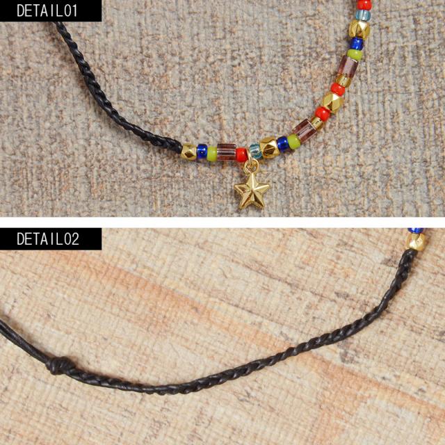 アンクレット Rafu【ラフ】スターチャームカラフルビーズ&コードアンクレット 全3色即日発送【アンク ビーズ コード 星 革 レザー チャーム スター ブラック ホワイト ブルー アクセサリー アンクレット サーフ ハワイ リゾート 海】