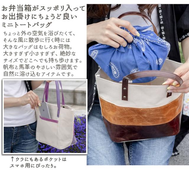ミニトートバッグ ランチバッグ レディース 帆布 本革 馬革 撥水 日本製 Sサイズ We-Row paccapacca