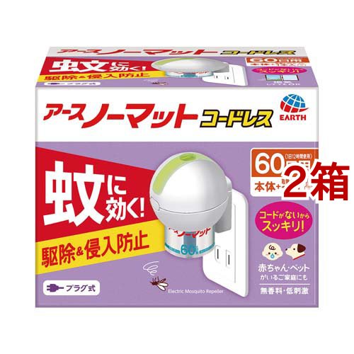 アースノーマット 蚊取り 60日セット コードレス 蚊 駆除 プラグ式 液体蚊取り(1セット*2コセット)[虫除け プラグ式]