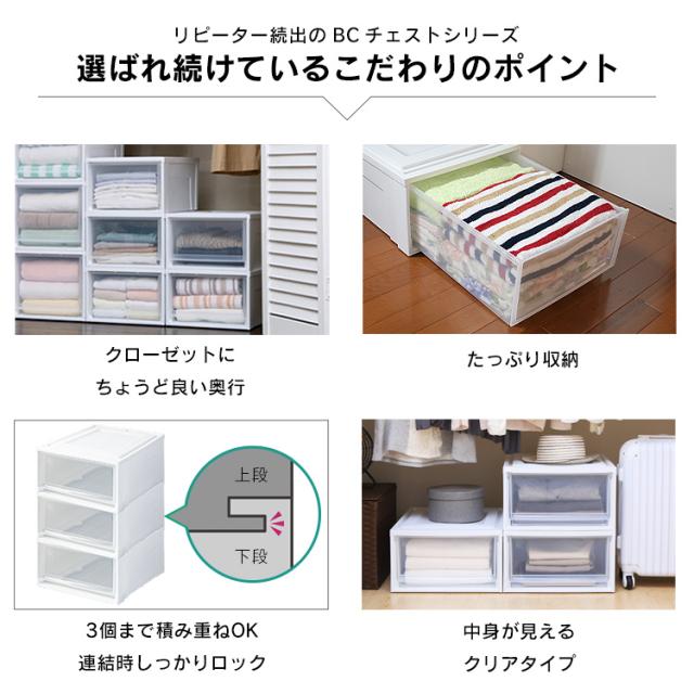【6個】 収納ボックス 引き出し 一段 収納ケース 幅35 奥行45 高さ23.2 衣類収納ケース チェスト 完成品 タンス 衣装ケース アイリスオーヤマ 収納 押入れ クローゼット クリア コンパクト 積み重ね プラスチック BCチェスト Mサイズ 浅型 BC-M *