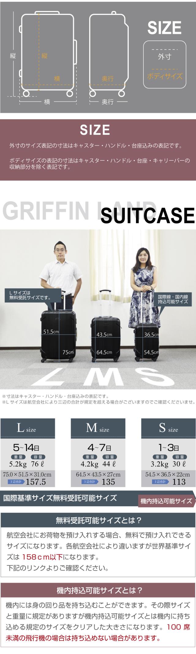 ※Lサイズは航空会社により三辺の合計が規定を超える場合がございますのでご確認くださいませ。