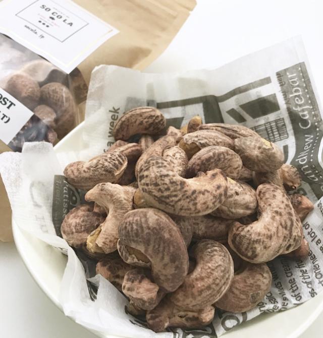 珍しいベトナム産の皮付カシューナッツです。うす塩でローストしてありますので、そのままでも、皮を剥いても、美味しく召し上がっていただけます。コーヒーやお酒のおつまみとして、ほろ苦さのある皮付はとても相性が良い大人のナッツです。