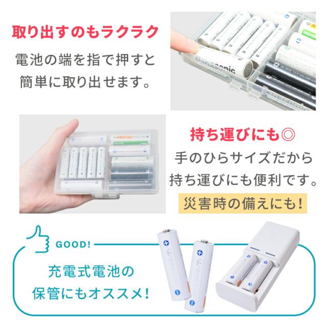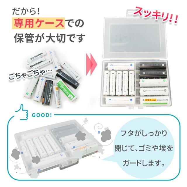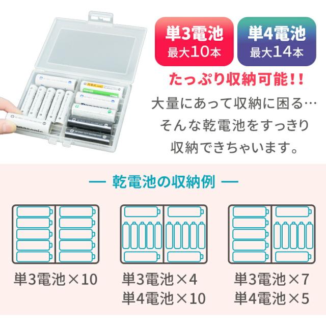 電池ケース/乾電池用ケース/単3電池/単4電池/乾電池/最大14本収納可能/単3/単4/充電池/充電式電池/エネループ/収納ケース/バッテリーケース/クリアケース/電池収納/電池収納ケース/単三/単四/兼用/角型/整理/整理整頓/スッキリ/大容量/保管/保存/災害/防災/備え/透明/クリア/整理/便利/まとめて保管/まとめ収納/電池ボックス/安全に保管/乾電池収納/保管ボックス/保管BOX/電池を収納する/コンパクト/電池専用ケース/