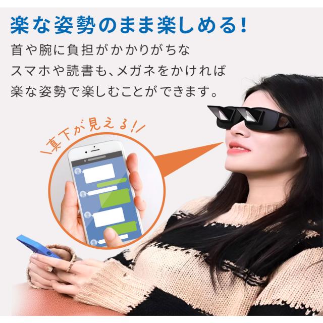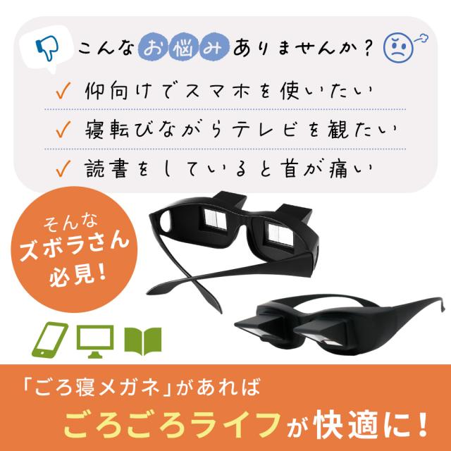 眼鏡/めがね/なまけもの/なまけものメガネ/ごろ寝メガネ/ごろ寝/寝たまま/寝たままメガネ/プリズム/プリズムメガネ/ゴロ寝/怠け者/寝たきり/介護/スマホ/ゲーム/寝たままゲーム/寝転んでゲーム/読書/寝転んで読書/メガネの上から/オーバーグラス/テレビ/映画鑑賞/新聞/動画視聴/雑誌/手元作業/首/負担軽減/負担/軽減/寝ながらめがね/スマホ/タブレット/便利/便利グッズ/アイデアグッズ/アイデア/入院/療養中/骨折/怠け者メガネ/リラックス/リラックスタイム/楽な姿勢/姿勢/楽/らく