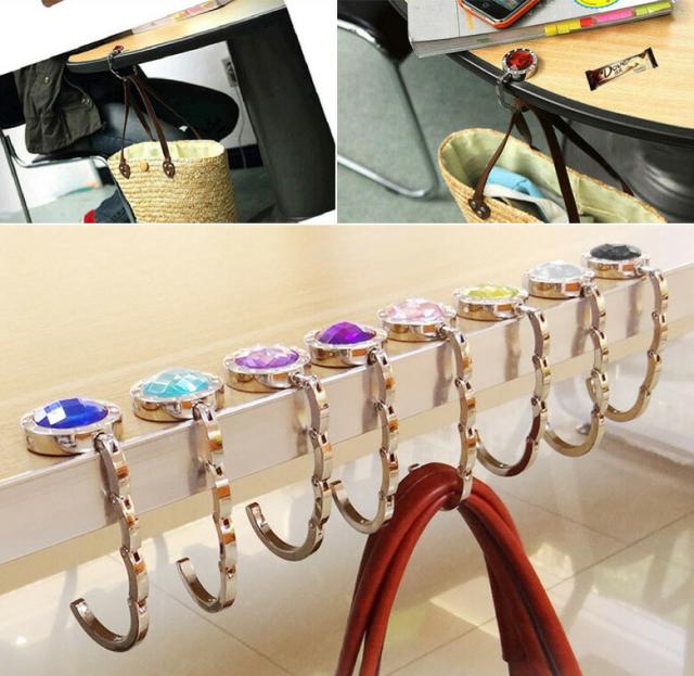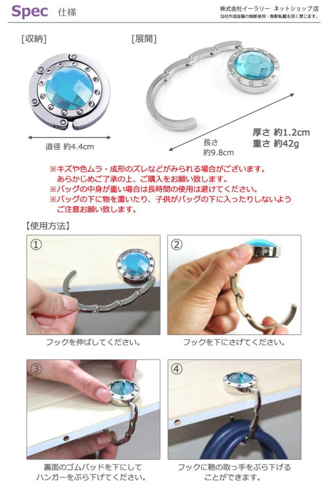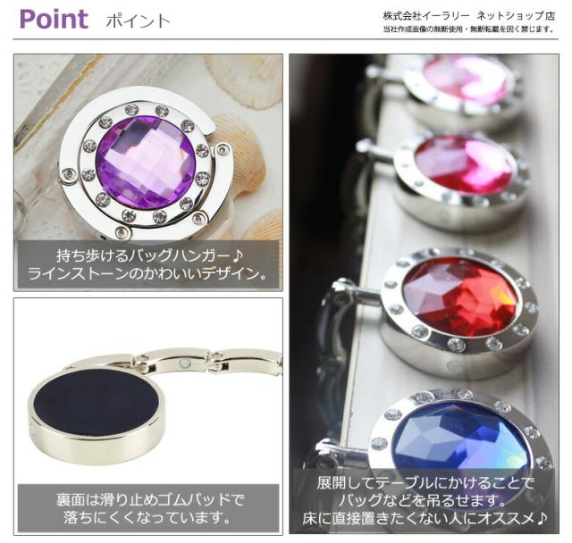 カバン/ホルダー/丸型/ラインストーン/便利グッズ/フック/清潔/コンパクト/かわいい/おしゃれ/滑り止め付き/ホワイト/ブラック/グリーン/スカイブルー/ブルー/パープル/ピンク/ショッキングピンク/レッド/イエロー