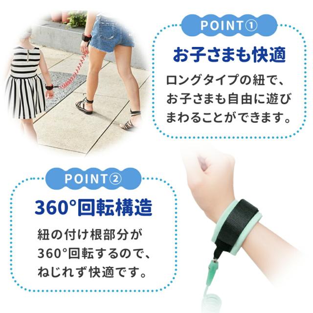 迷子/迷子防止/防止/迷子防止紐/リストバンド/迷子紐/お散歩/ハンドベル/ロープ/ハーネス/セーフティ/安全/リュック/迷子対策/お散歩/飛び出し/飛び出し防止/お散歩/手つなぎ/旅行/お出かけ/ベビー/子供/こども/迷子防止グッズ/危険防止/セーフティハーネス/1.5m/2.5m/ブルー/ピンク/オレンジ/手首ハーネス/幼児/テーマパーク/人混み/360度回転/防犯/安全対策/伸びる/セーフティーグッズ/
