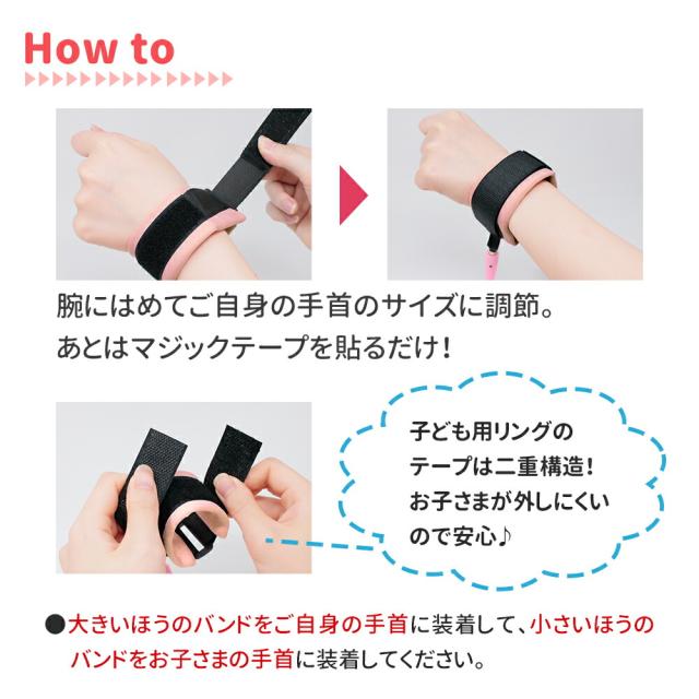 - もうすぐ2歳になる二人目が、手をつなぐことが嫌いなようで、親が手を掴むと振り払われてしまいます。このままでは危険と思い、夫と相談して購入しました。しかし、手首につけるとやはり違和感があり、マジックテープをはがそうとしてしまいます。簡単には外せないようにはなっていますが、子供に慣れさせる時間と練習が必要ですね。「あって良かった」ということがないのが一番ですが、お守り的に持っておきたいと思います。