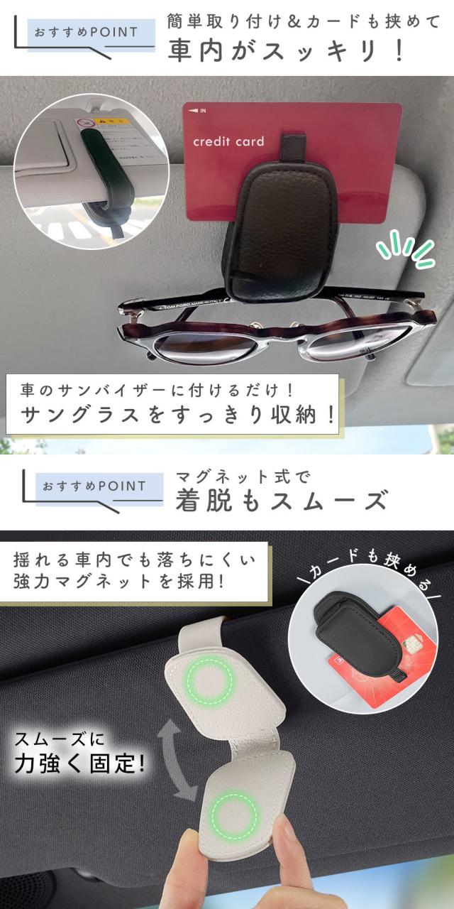 ドライブ中の眼鏡やサングラスの置き場に困らない、実用性の高い便利グッズです。