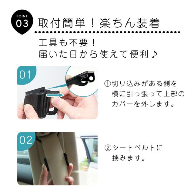 - シートベルトが胸に当たってムズムズしていたのが、これを使ったらスッキリしました。