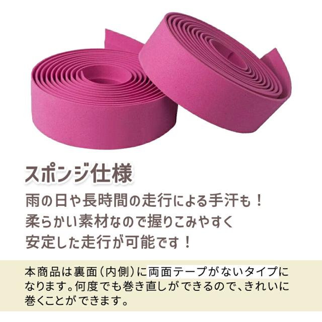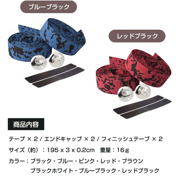 バーテープ/自転車/2個セット/テープ/ロードバイク/クロスバイク/ハンドル/エンドテープ/エンドキャップ/フィニッシュテープ/スポンジ/手汗/雨/グリップ/ブルホーン/ドロップハンドル/エアロハンドル/サイクリング/スポーツ/無地/迷彩/柄/シンプル/ブラック/ブルー/ピンク/レッド/ブラウン/ホワイト