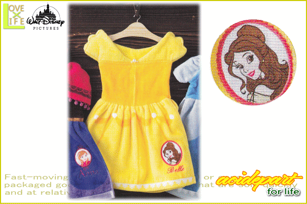 【ディズニープリンセス】ドレスタオル【ドレッシーベル】【ベル】【美女と野獣】【ディズニー】【刺繍】【ドレス】【タオル】【アニメ】【グッズ】【映画】【かわいい】