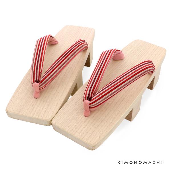 二枚歯 下駄単品「赤、ピンクの縞の鼻緒、白木台」レディース 三味 桐下駄 女性下駄