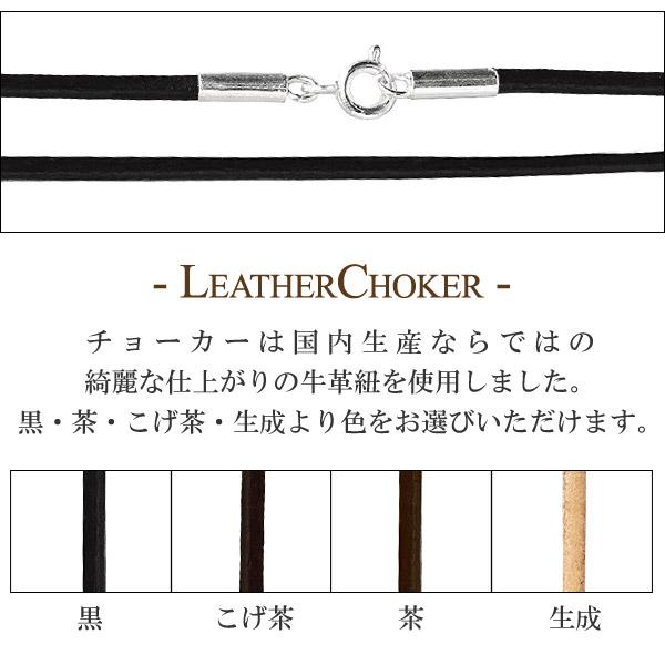 チョーカーは国内生産ならではの綺麗な仕上がりの牛革紐を使用し、さらに厳選した上で輝くシルバー925製金具をつけました。