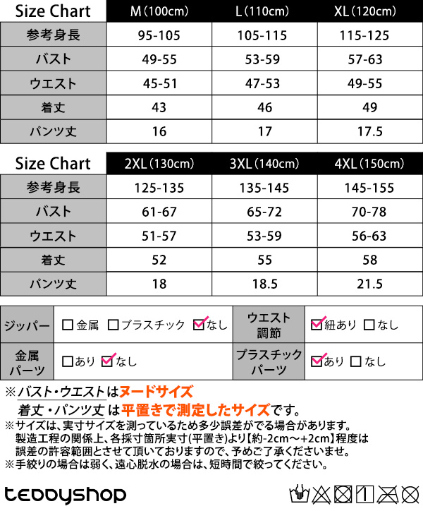 ●バスト・ウエストはヌードサイズ、着丈・パンツ丈は平置きで測定したサイズです。
