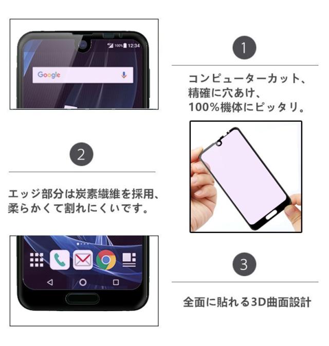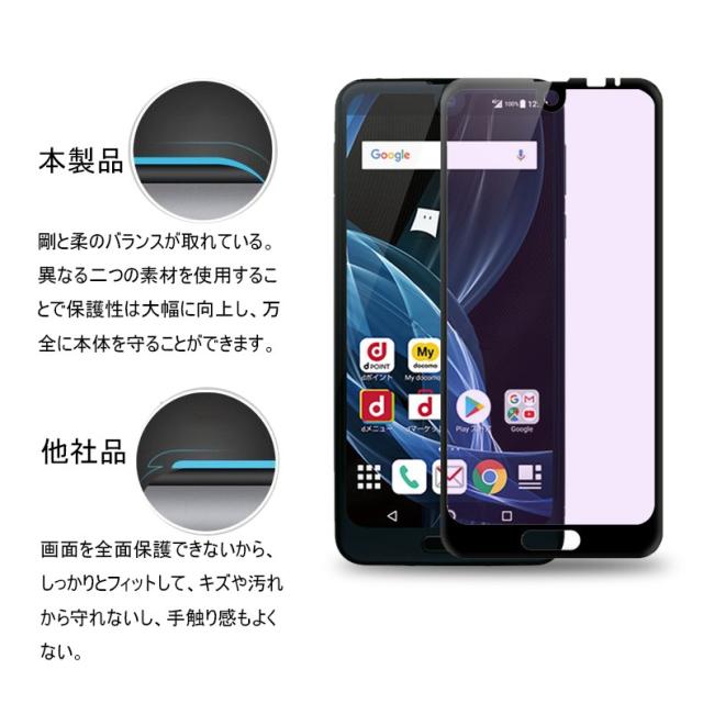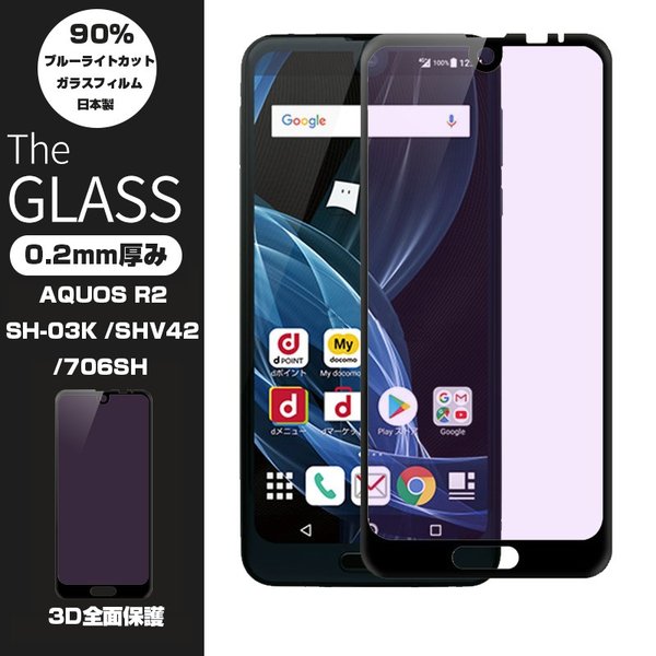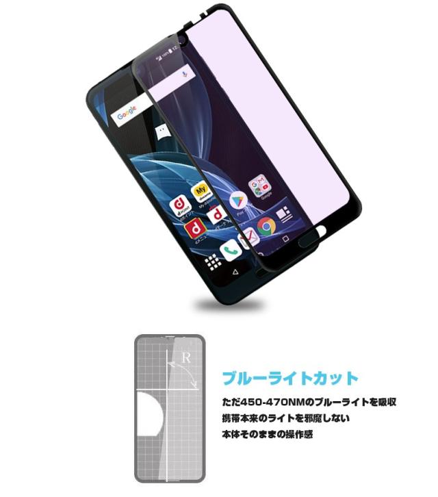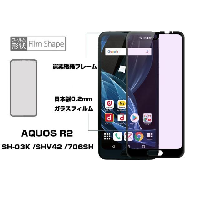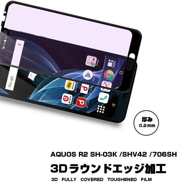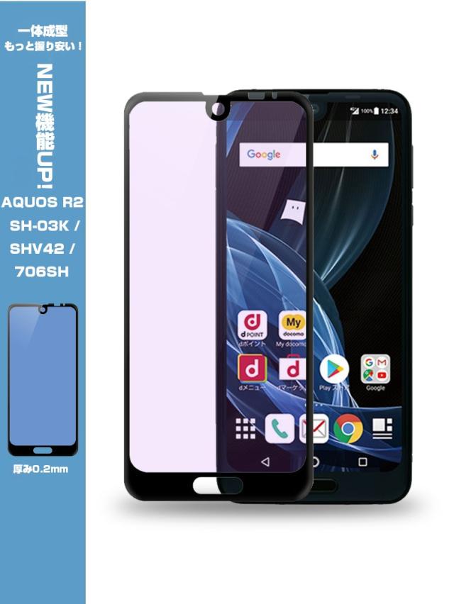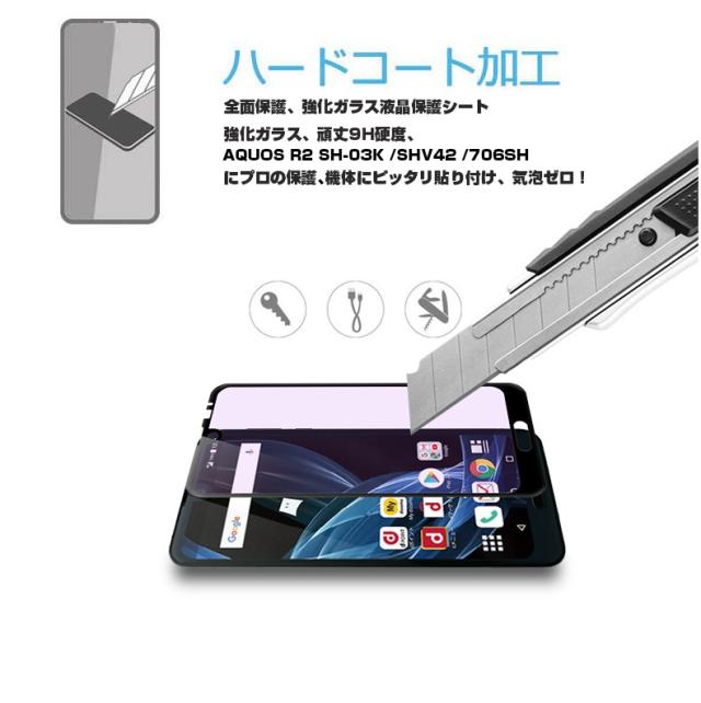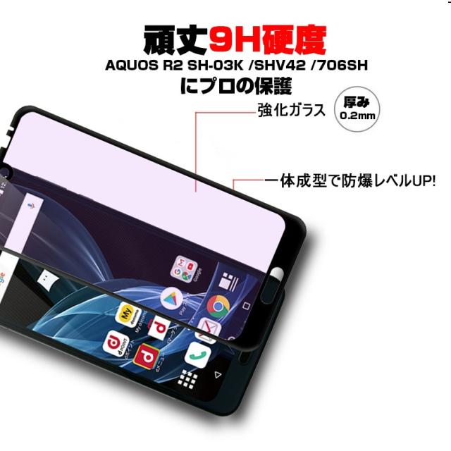 【2枚セット】AQUOS R2 706SH ブルーライトカット 全面保護ガラスフィルム SHV42 強化ガラス保護フィルム SH-03K ソフトフレーム