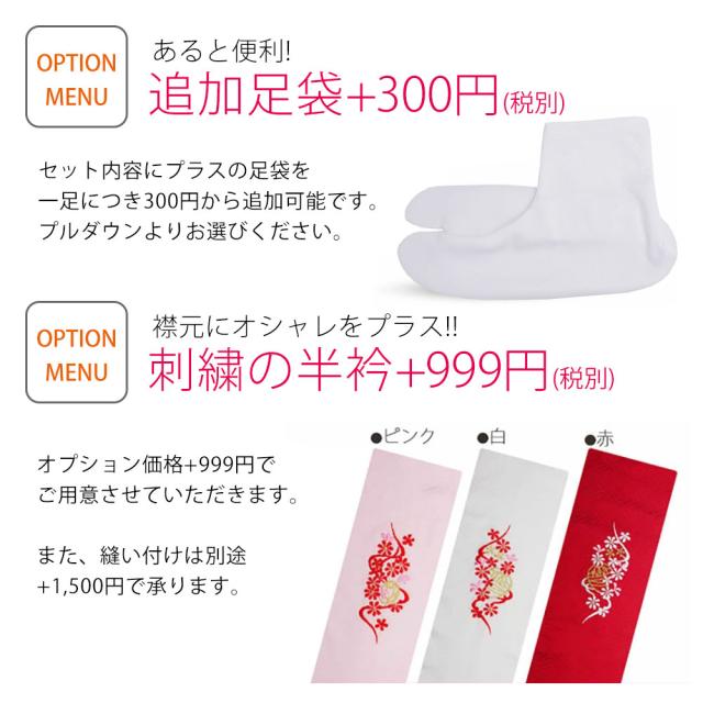 2.刺繍半衿・・・プラス999円(税別)でセット出来ます。