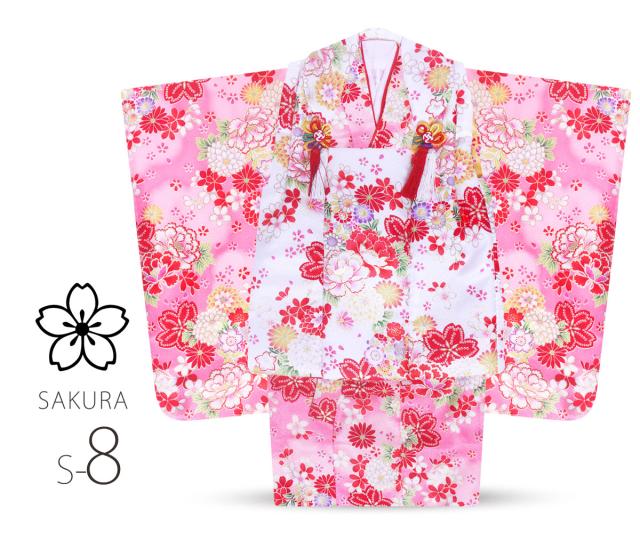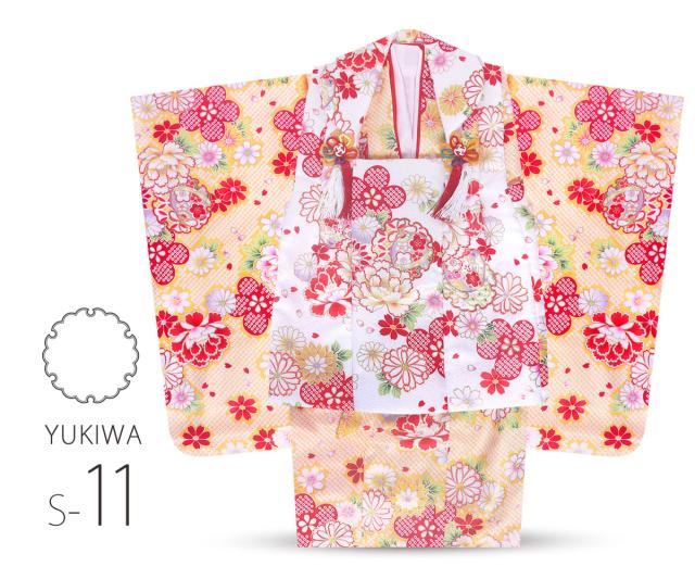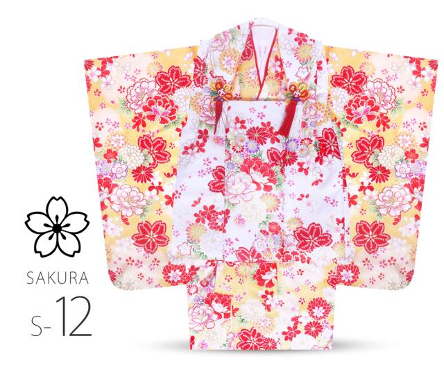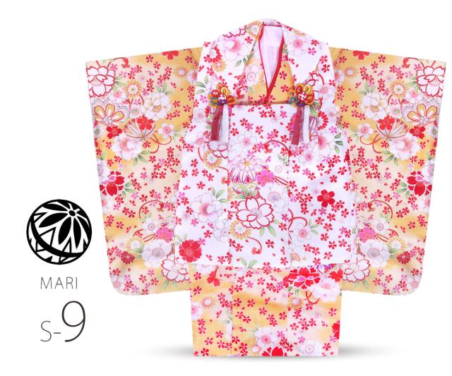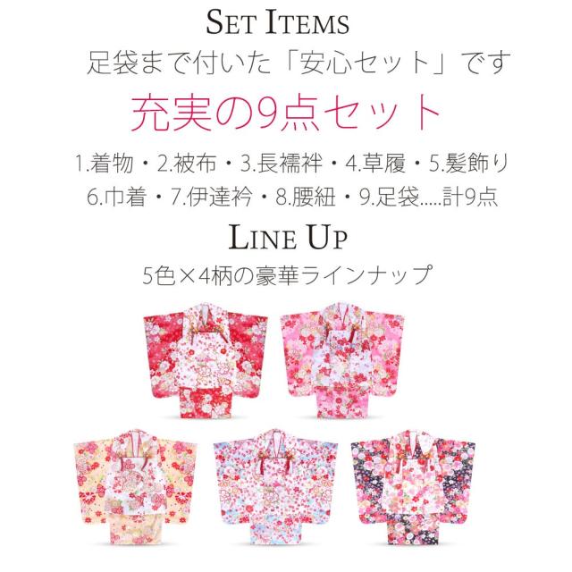 着物、被布コート、長襦袢、重ね衿(縫付済)、草履、巾着、足袋、髪飾り、腰紐1本…合計豪華9点フルセット
