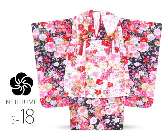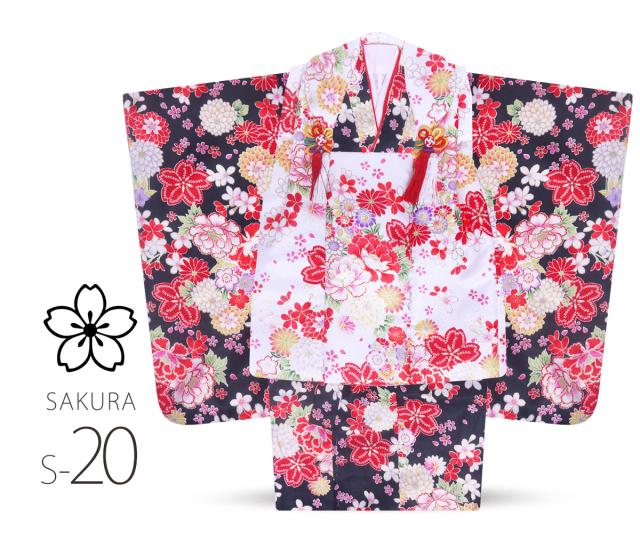 七五三 着物 被布コート セット 9点セット 選べる20タイプ 古典着物セット 被布セット 七五三 着物 3才 女児用・雛祭り・3歳 女の子 【ピンク 赤 青 黄 黒 鞠 ねじり梅 雪輪 桜