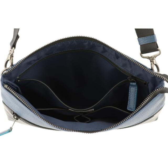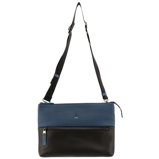 ランバンオンブルーのレザーショルダーバッグ。ワンショルダーバッグ、クラッチバッグとしても持てる3WAYです。全3色の大胆なバイカラー。ランバンオンブルーらしいブルー、爽やかなシロ、シックが好きな方におすすめのクロのエンボスレザーと、クロのソフトスムースレザーの組み合わせで、カラーだけでなく異素材のミックスが魅力です。