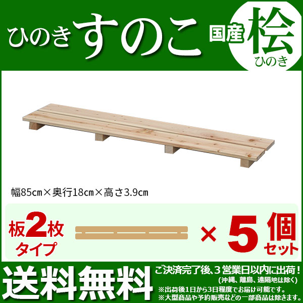 ひのき すのこ『国産桧すのこ 板2枚』(5個セット) 幅85cm 奥行き18cm 高さ3.9cm 日本製ひのきスノコ ヒノキスノコ 檜簀子 (NHS-002)