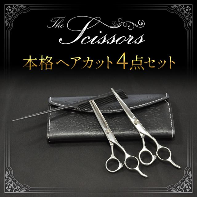 はさみ ヘアカット ハサミ カット コンパクト 4点セット 美容院 スキばさみ コーム セニング カット サロン 前髪 散髪 メール便 セルフカット 髪 トリマー ペット 送料無料