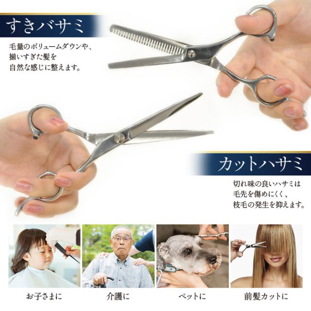 理髪店 ヘアサロン カット ハサミ ビューティーサロン セルフカット ヘアアレンジ はさみセット 枝毛 本格 毛量調節 刈り上げ V溝タイプ ホームカット ケース付き 便利 おすすめ