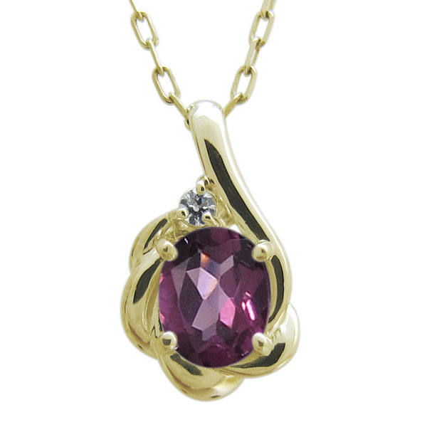 1月誕生石ロードライトガーネットを一粒使用した、10金製のネックレス・ペンダントです。
