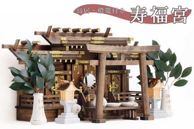 当店で大好評を頂いております「寿福宮」。煌びやかなお社に、さらに濃い褐色で仕上げた家具調・モダン神棚、限定数販売となっています。