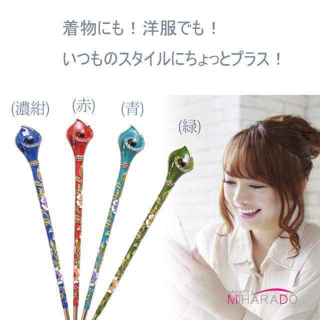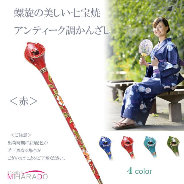 【メール便 送料無料】螺旋の 美しい 七宝焼 アンティーク調 一本かんざし 簪 和服 振袖 袴 結婚式 卒業式 入学式 日常 即納