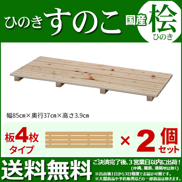 ひのき すのこ『国産桧すのこ 板4枚』(2個セット) 幅85cm 奥行き37cm 高さ3.9cm 日本製ひのきスノコ ヒノキスノコ 檜簀子 (NHS-004)