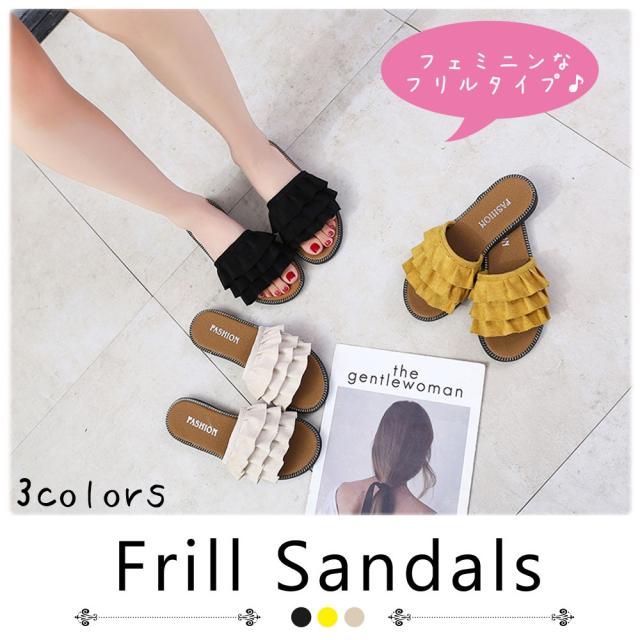 フリルサンダル フラットサンダル レディース 夏用サンダル ミュール ビーチサンダル